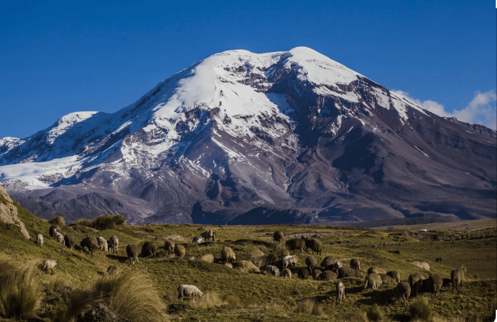 Chimborazo is a snow covered inactive volcano, the highest mountain in Ecuador and the 39th highest peak in the Andes mountains. Located at the equator, its summit is the farthest point on Earth’s surface from the Earth’s center. To the locals it is “the closest volcano to the sun.”