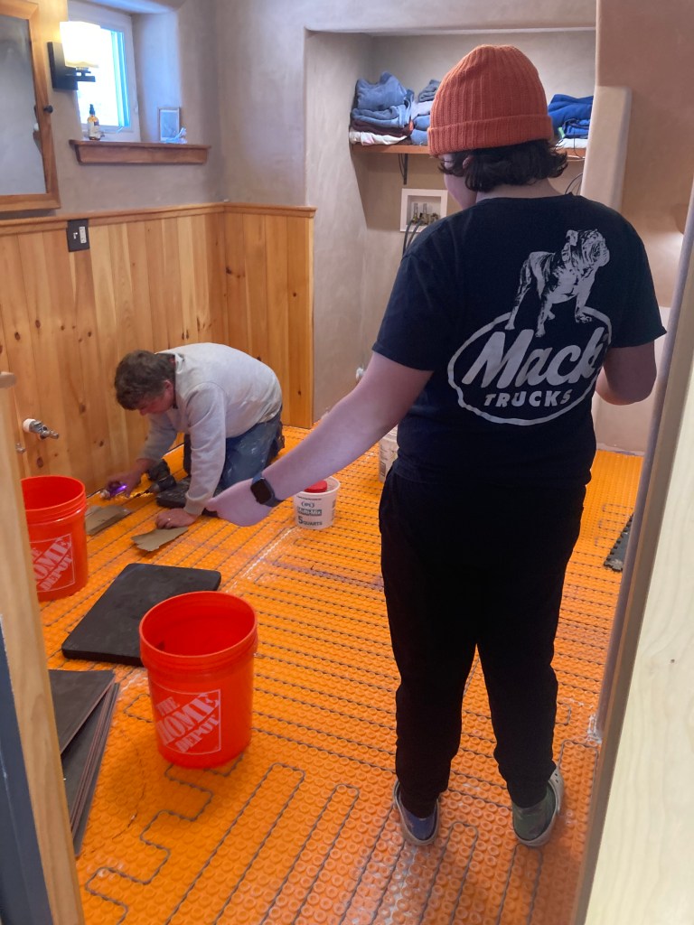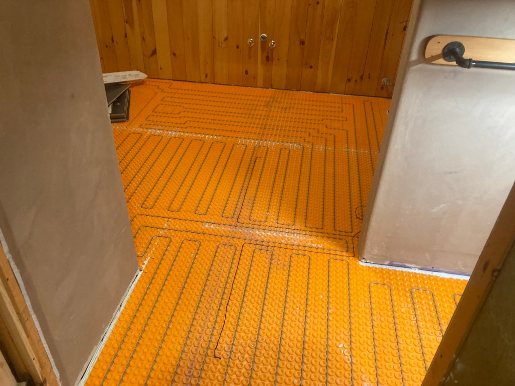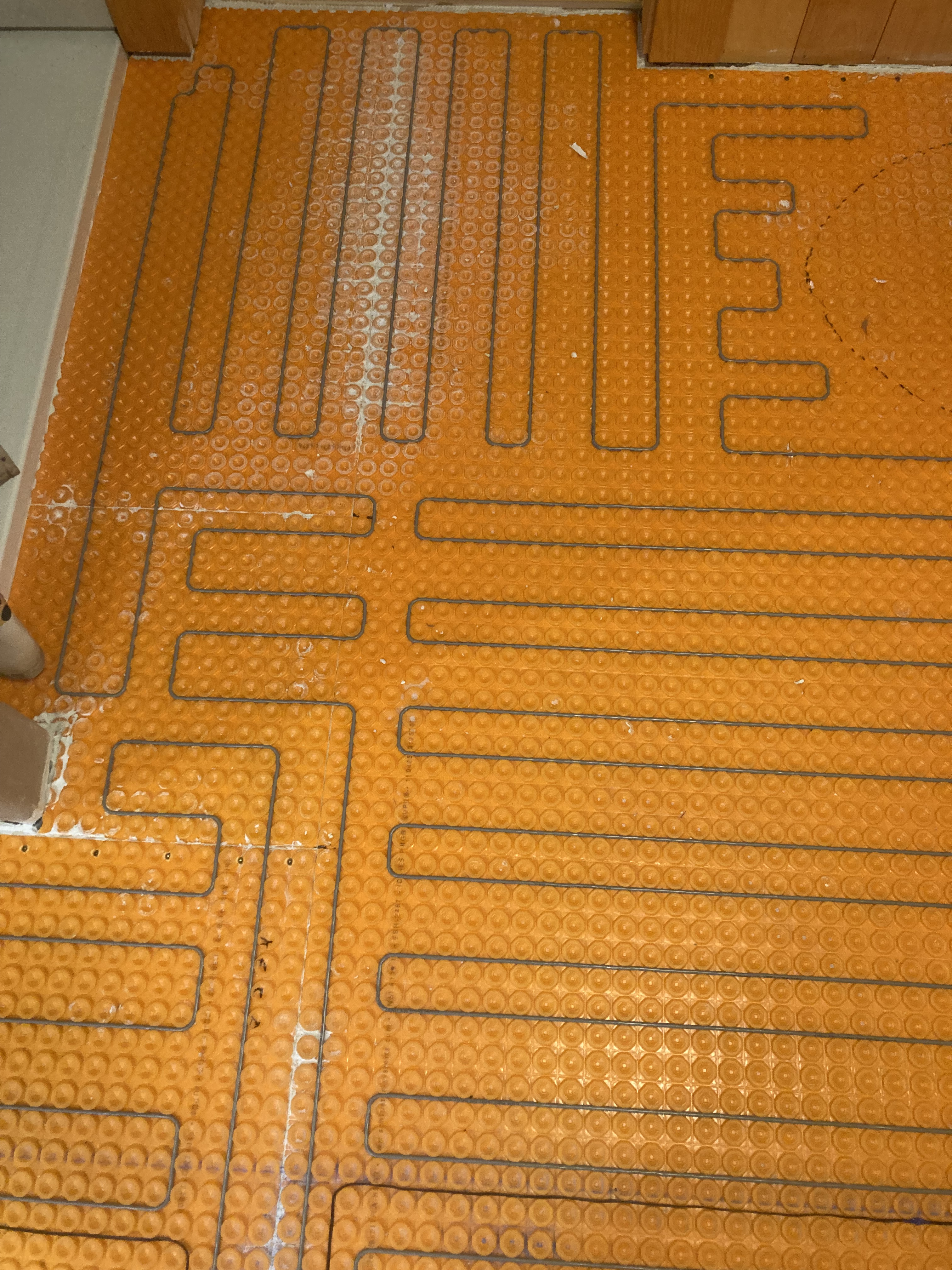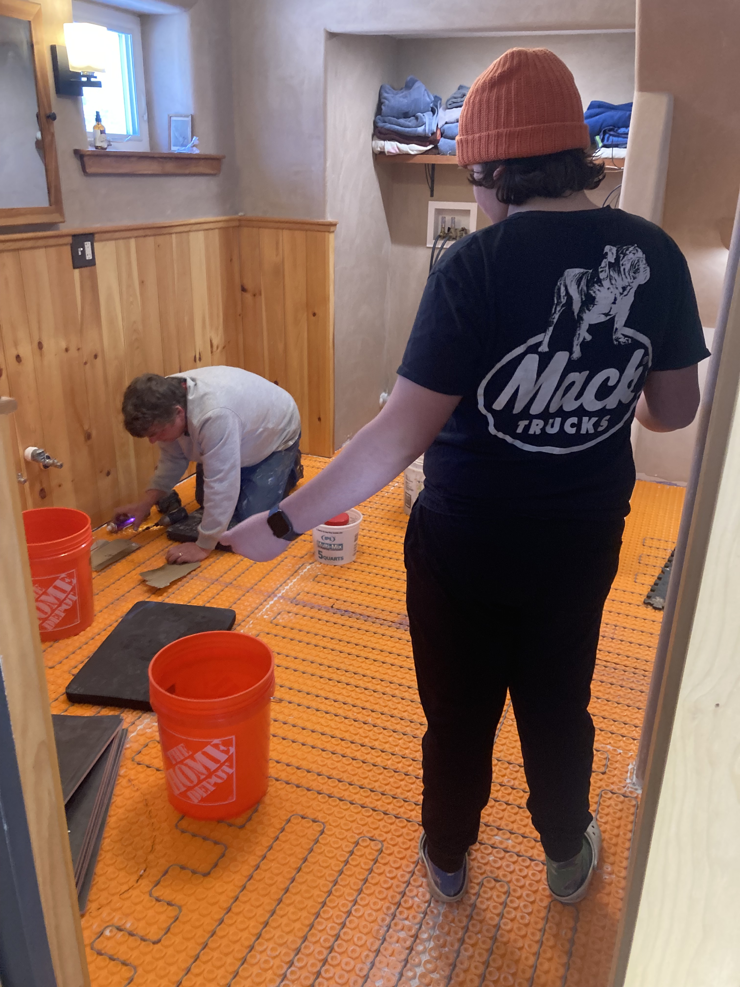 We are doing the finish work, finally, in the bathroom we added onto our house back in 2017. For nine years that room has had the basic plumbing but no heat, and a subfloor painted grey. Immense is our blessing to be able to do this finish work now, when masked jackels rampage our community, when our brown skinned neighbors stay indoors afraid to leave their house, more than 200 people having been arrested and absconded during “Operation Catch of the Day,” while so many homeless still live on street corners begging for coins; that we are able to afford such luxury now is a privilege not lost upon us. But still, our addition needs to be finished.