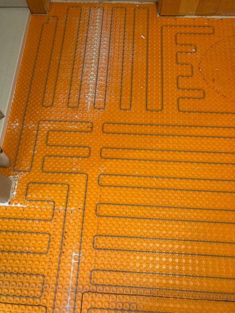 An Ohm is the measure of resistance, an object’s opposition to a flow of electric current. That resistance to flow creates friction, which friction creates heat, which is what we desire in the floor of the bathroom. We need to test this before laying tile.