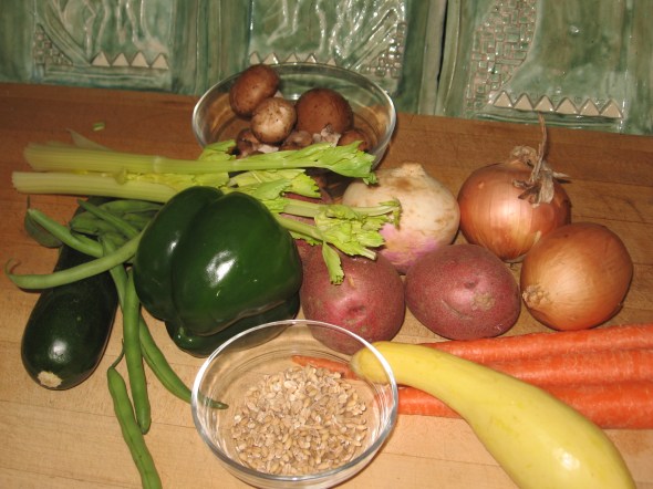 Posted: May 6, 2011 Filed under: In the Kitchen 2 CommentsIn our house, we like to call soup “zuppa” (zoopah) – a habit I picked up after dining at a fabulous Italian eatery in Chicago’s Old Town. The zuppa we eat most often is a vegetable barley, adapted slightly from Moosewood New Classics. This recipe easily feeds 4 adults.