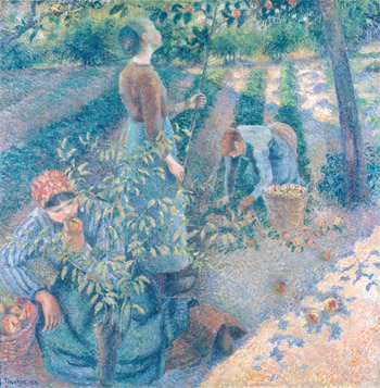 Posted: July 2, 2011 Filed under: Art & Healing, Farming off the Farm, What is an Art Farm 1 CommentOur friend Dave Hopkins sent a note of encouragement and his comments on Camille Pissarro struck a chord. Dave lives along the watershed of the Deerfield River in Western Mass. His footprint is light: solar panels on the barn, on sunny days, generate more power than they consume – they are feeding back into the grid – and the humanure is composted into fertilizer, amended back into the soil to nourish the vegetables, and in turn the animals and humans. It’s an integrated set-up. His work with the land has inspired us as much as the ideas he has passed our way. By his permission, we post his comments here. On a note of serendipity, this work by Pissarro, from 1886, is titled “Apple Picking.” That works for us.