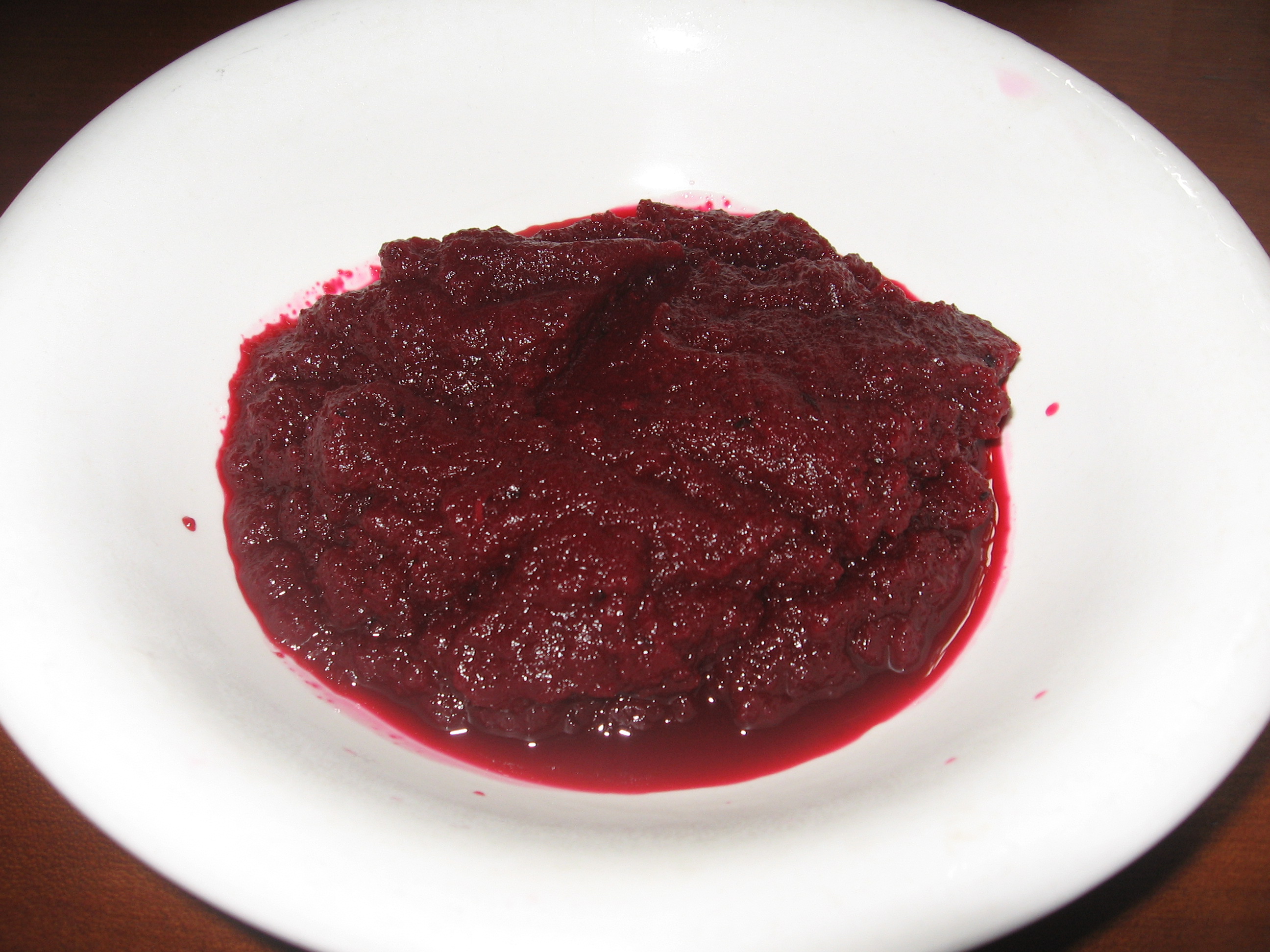 When cool to the touch, peel and chop, and then puree in a food processor.  Press the puree through a sieve, and combine 1/2 cup puree with 2 tablespoons sugar and set aside.
