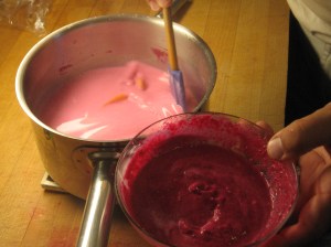 Remove the thickened base from the heat and slowly wisk in the beet/mascarpone mixture.