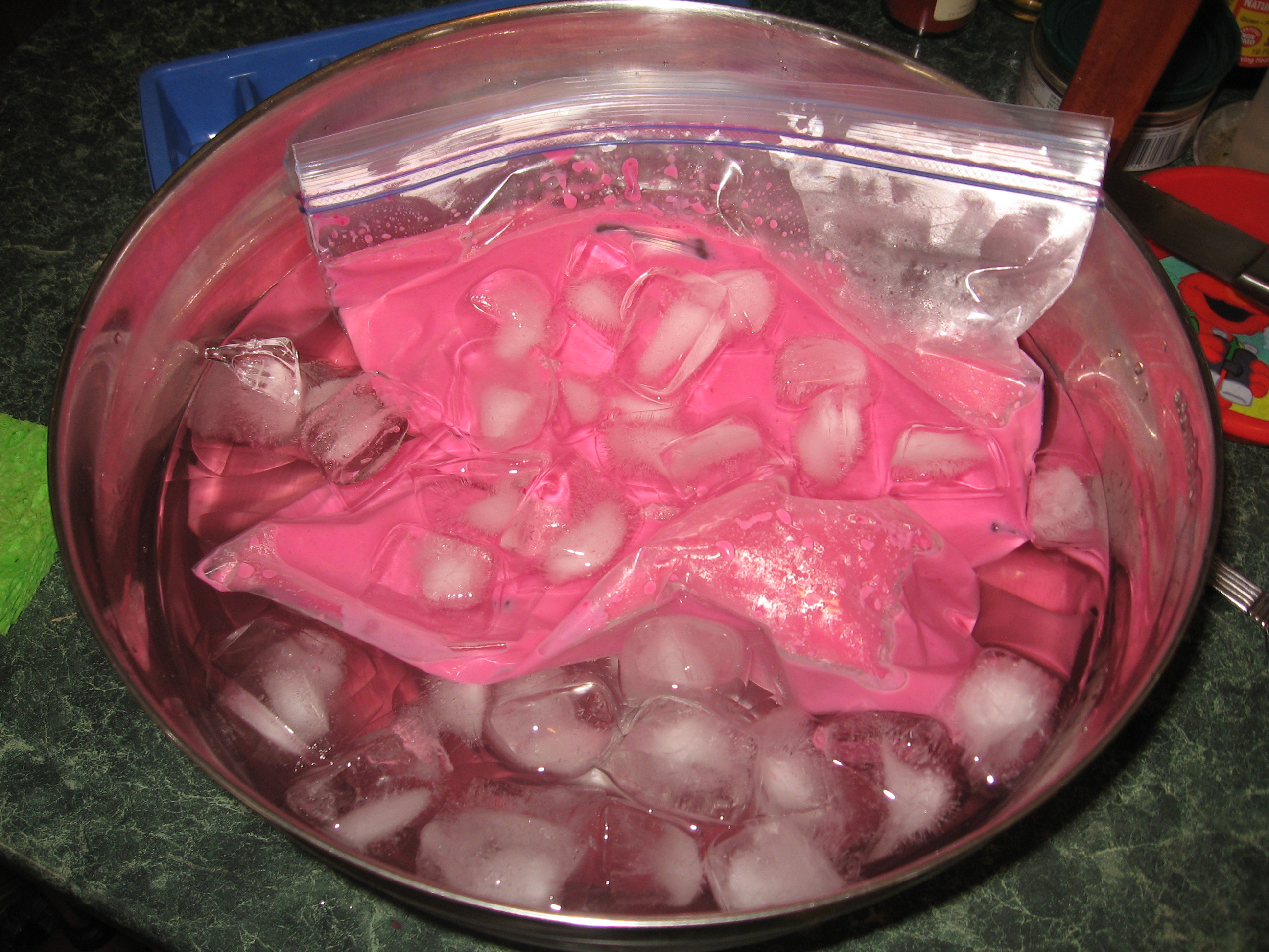 Pour the mixture into a one gallon zip-lock bag and submerge in an ice bath for 30 minutes, or until chilled.