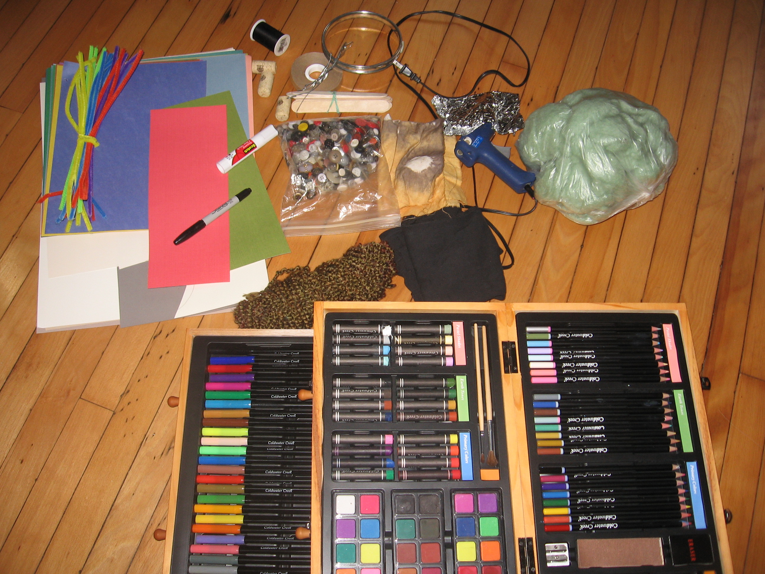 I’ve been organizing a “play bag” of materials to keep me busy during some of the recovery. My hope is to create one small art piece per day, for my daughter – something I can still do for her. This will hopefully minimize some of the helpless feelings I expect to run into and will bring a light playfulness to what might otherwise be a dreary vision for her.