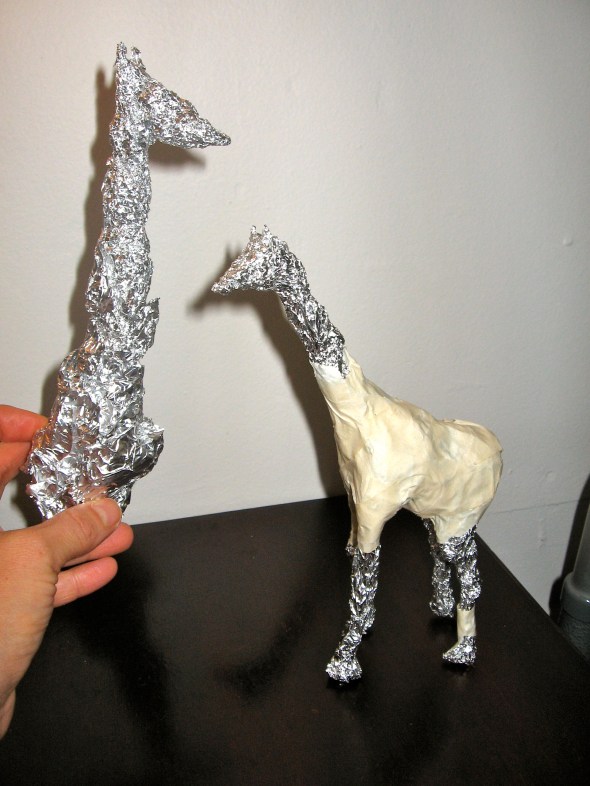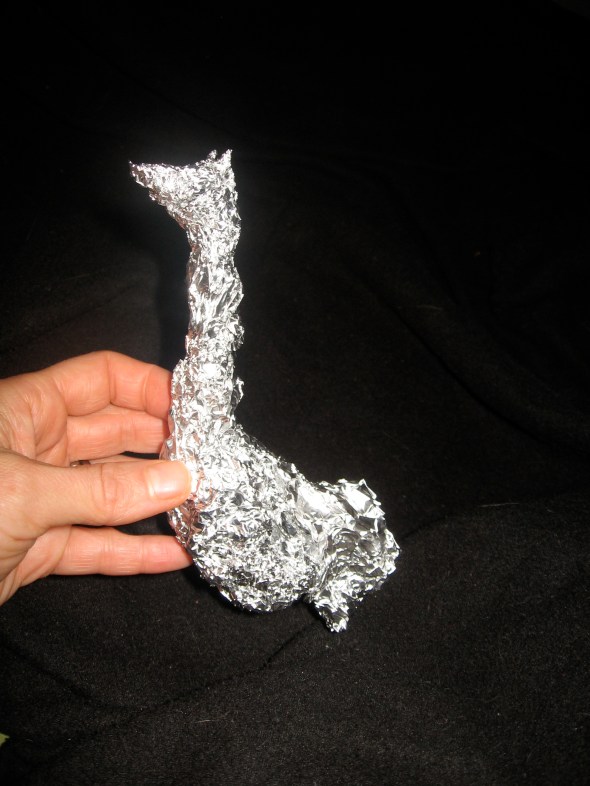 Posted: November 1, 2011 Filed under: Art & Healing, Child Centered Activities 2 CommentsMore than a decade ago, my School of the Art Institute mentor, Don Seiden (you can find his link on our blogroll), introduced me to the world of foil and masking tape sculpture. It is an additive process which I expect to complete using acrylic paints.