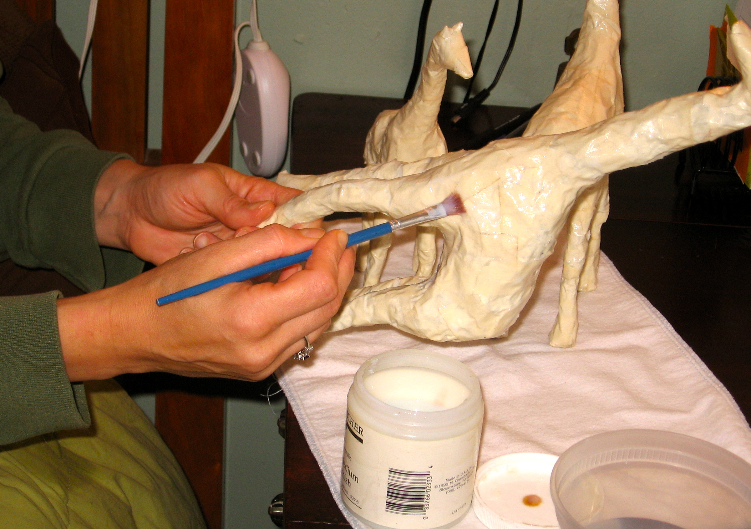 Applying a varnish to help seal the tape.