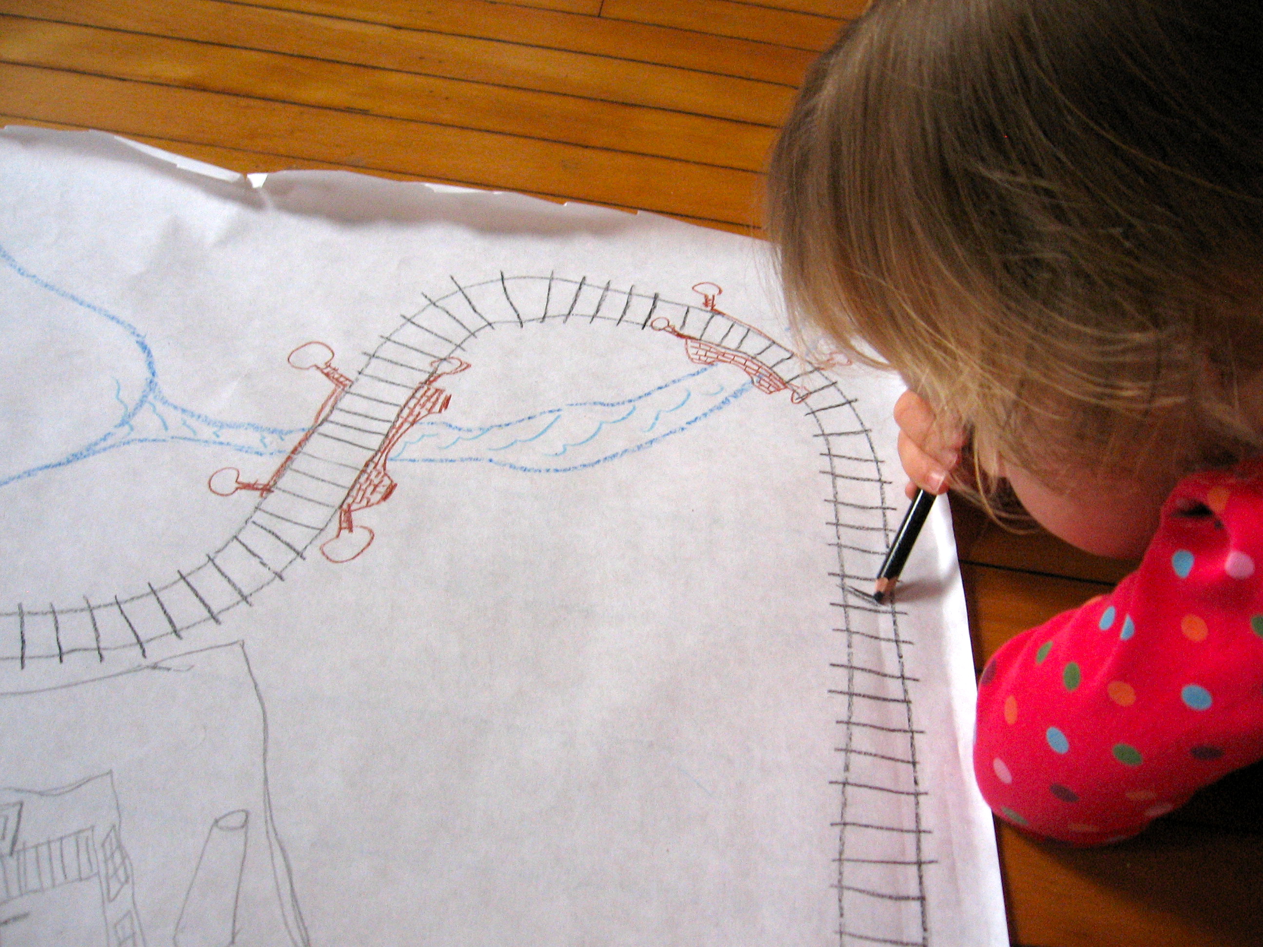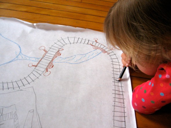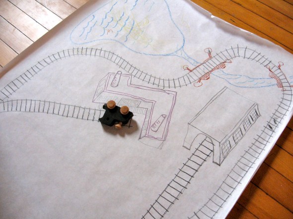 oh man oh man……the joy brought to me over the years, by drawing and following a simple path to somewhere, laid out on paper. it invited me in, every time. and the same, for my boys. we would make train tracks wherever we were for the original train man. oh i wish i could draw a quarter of the way you two (soon three) draw. xoxoxoxox