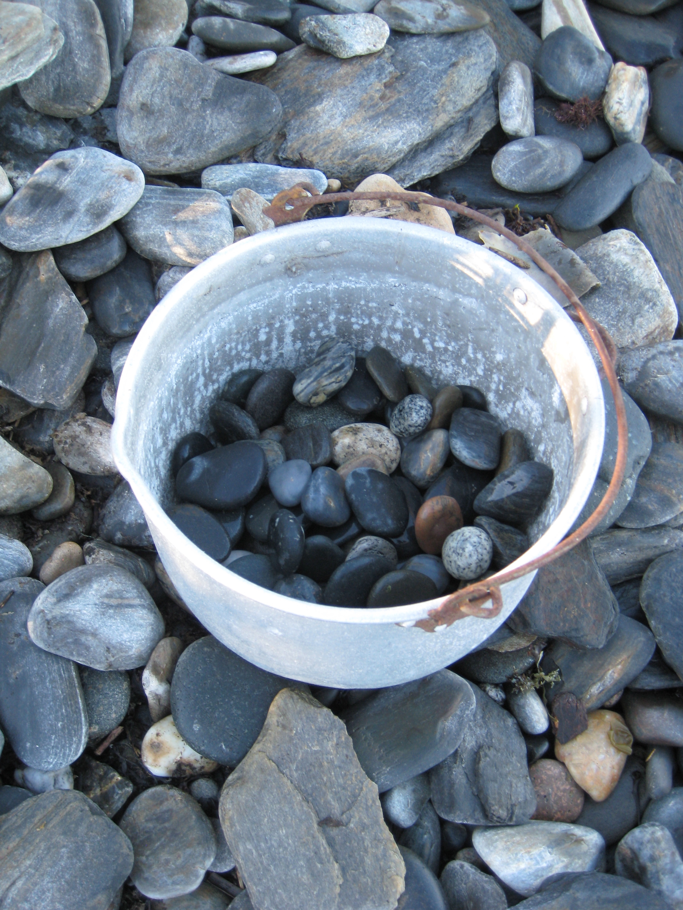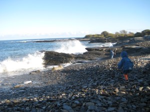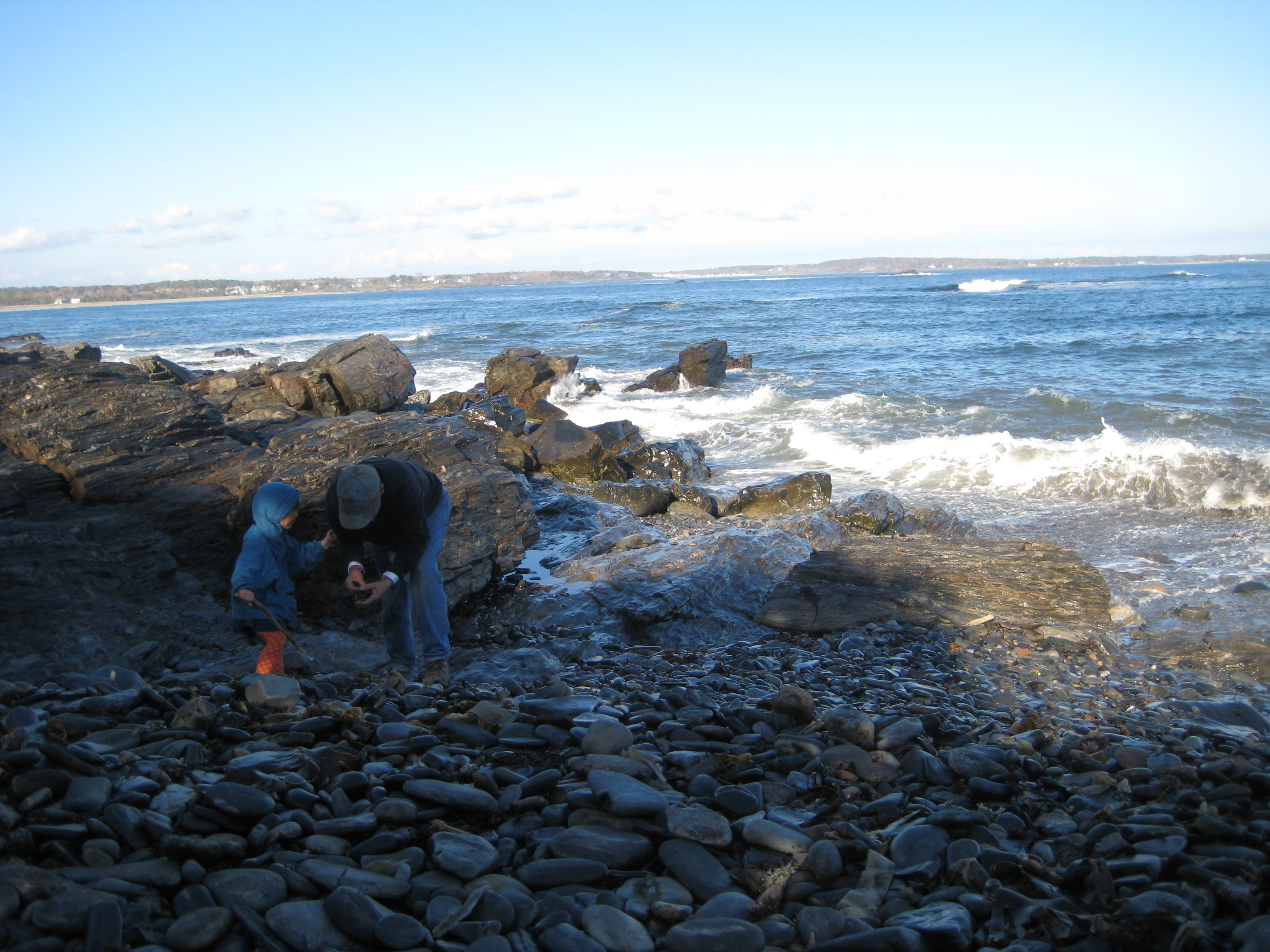 For our kitchen cabinets, we are going to make pull knobs using beach stones.  Today was a perfect mid-autumn day, and we went gathering along the cliff walk.