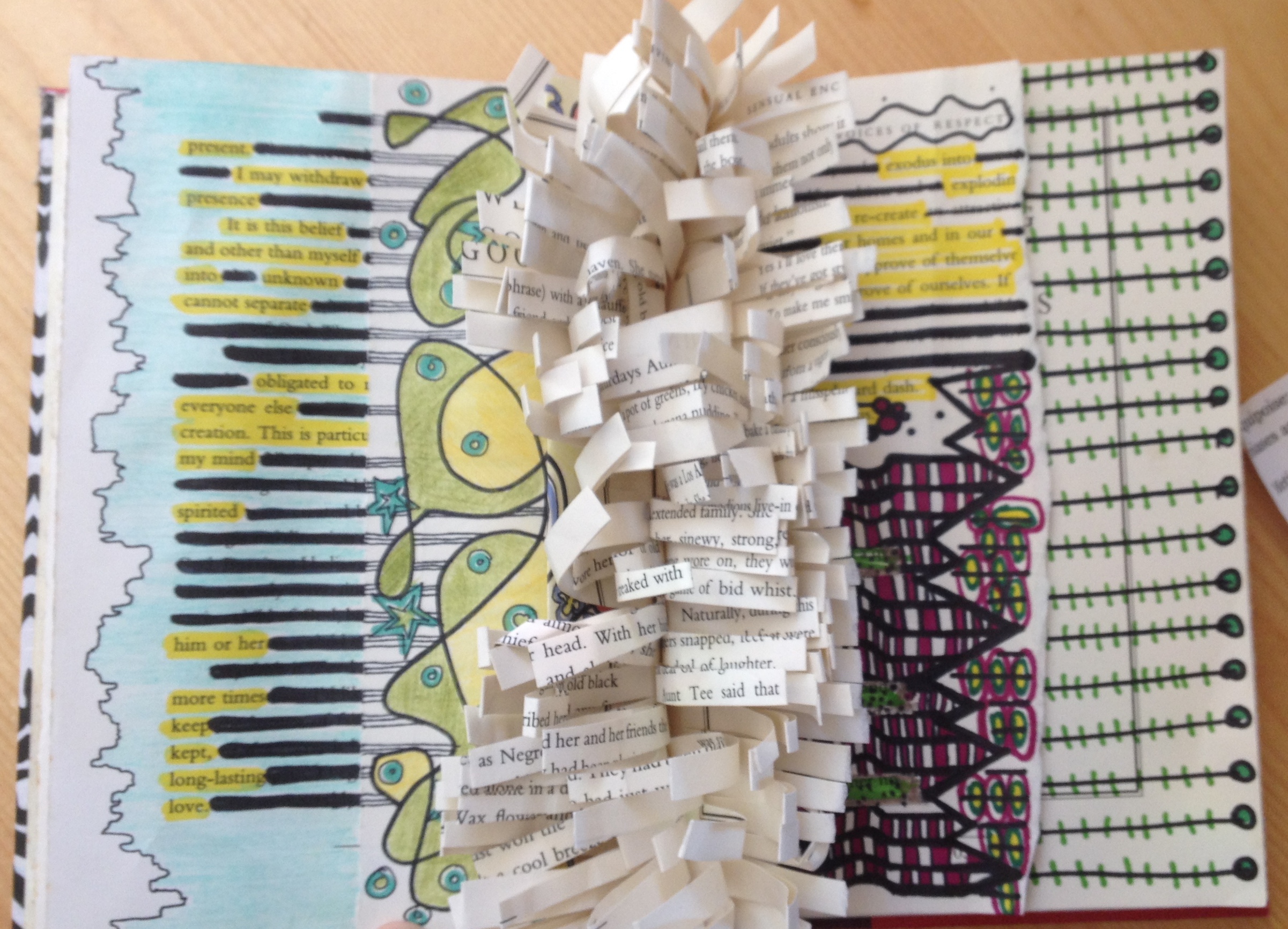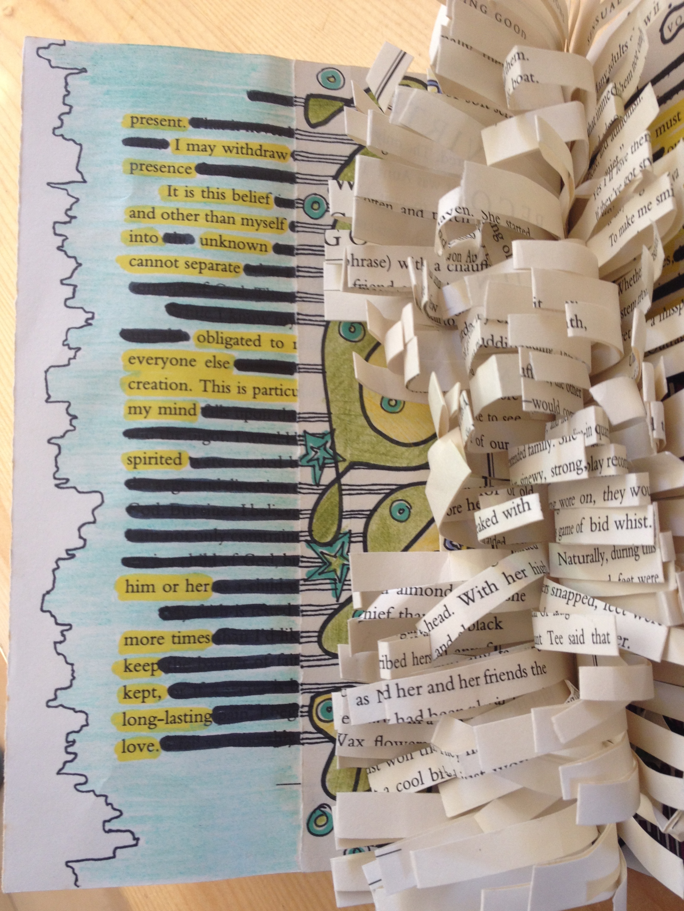 This has been a powerful art experience for everyone. While there are wildly creative and endless possibilities, here are a few images from my own journal just to give the idea. A special thanks to those friends who have rallied to collect books for this ongoing project.