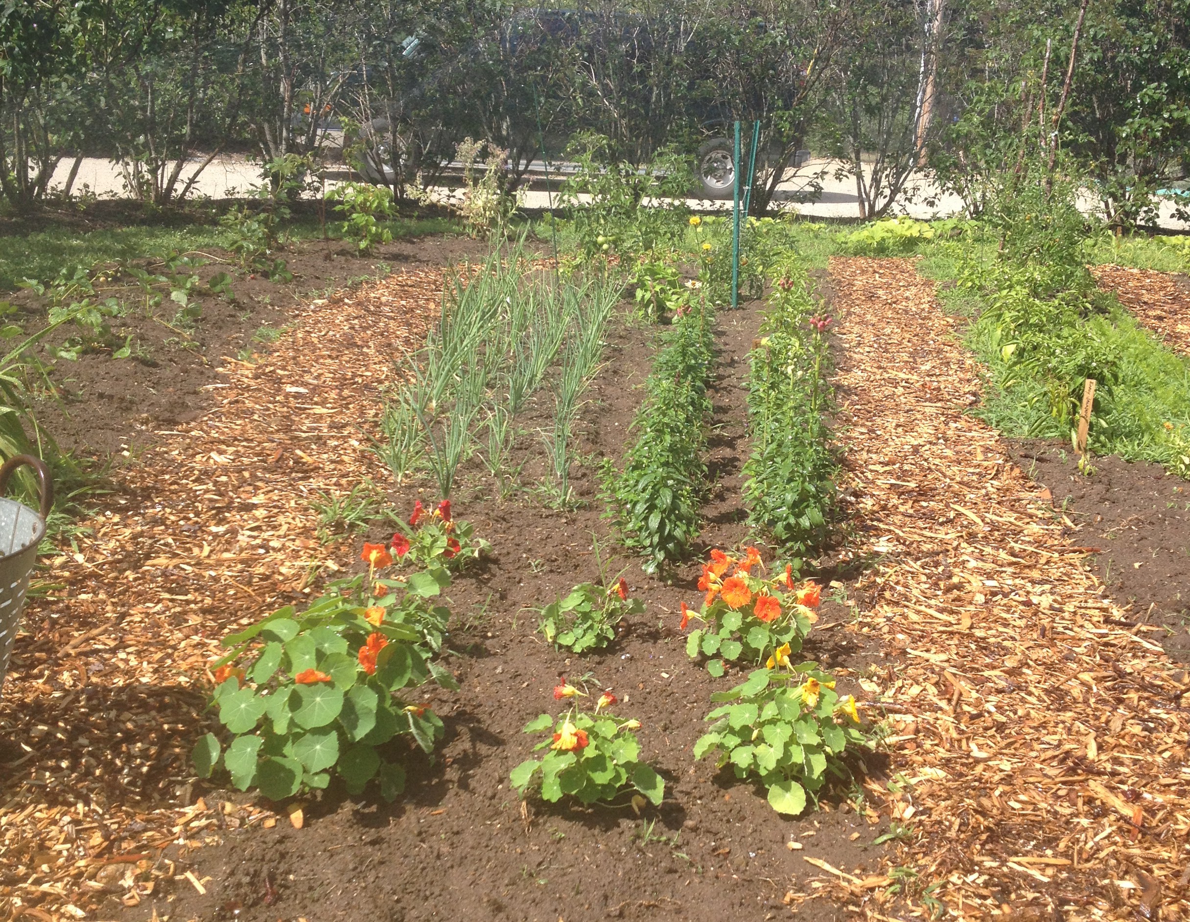 In late-May, on a rain-drenched day, Noah and I hauled across the bay crates filled with the starts and seeds: japanese eggplants, red and white onions, varieties of tomatoes, peppers, butternut and buttercup squash, bush beans, radishes, carrots, beets, slicing cucumbers, and a potager’s array of herbs and flowers. Some seeds failed to germinate. Some plants have been slow to take root. Overall, the garden is flowering and fruits are forming on the vines.