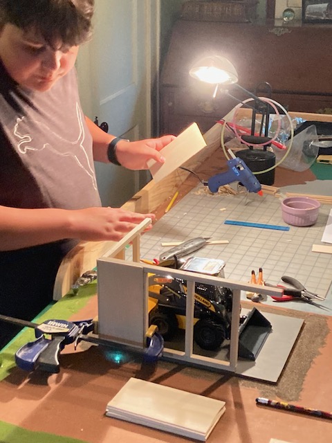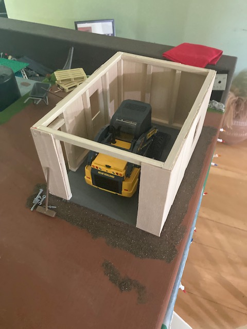 Summer brings heavy equipment to the farm, and equipment requires outbuildings, so we have been building, albeit in 1/16th scale.