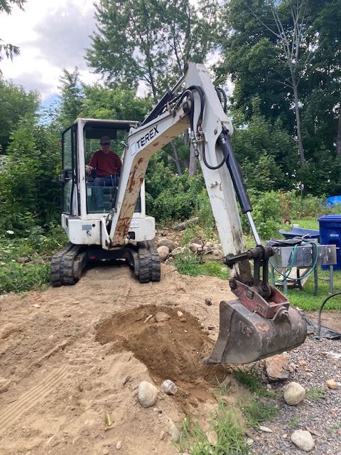 Thankfully I work in the trades, and our friend Jim has spent decades doing site work, building roads deep in the Maine Woods for loggers. In fact, Jim is both the solution and cause of our problem, having dumped – at my request – the gravel here in our yard, left overs from a tiny house job we did together. We need to expand our driveway, and free material helps.
