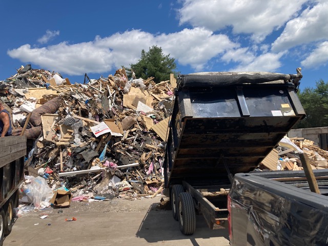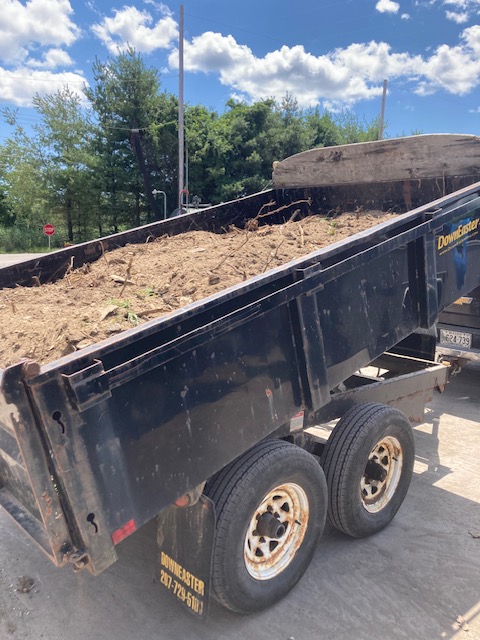 Our soil is infested with knotweed, the highly invasive plant, and very few dumps will take soil with knotweed. I found one yard which will incinerate it, at a very high cost of $145 per ton. I will not be sneaky and lie. So we hauled 4 tons off, and will spread the rest in our side yard, then plant grass seed. A compromise lower cost solution.