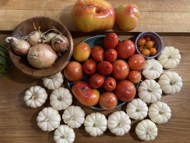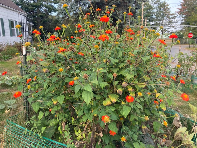 The thrum of summer has quieted, the Supermoon Full Moon Lunar Eclipse passed on Tuesday, cool nights of autumn descend: Pole beans ripen, Winter squash come to its full, Brussel Sprouts fatten, Poblanos produce still, Tomatoes remain abundant, the Cucumbers are spent, while Tithonia still shouts “look at me!!!” We will plant garlic come November.
