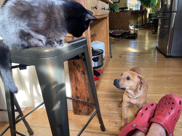Our art farm is home now to two adults, two children, two rescue dogs from the South and two rescue cats, one from Puerto Rico and the other from Oklahoma. Meanwhile, back in Acton, Grammy Rose keeps rescuing dogs, 35 having been adopted during the month of October.