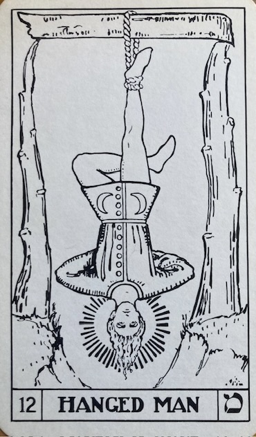 Such then, when I asked my son to pull one card from the Ryder-Waite deck, the “Hanged Man” emerged.  At the age of 12, my son pulled card 12 from the deck.  Jung referred to this as a synchronicity; events that coincide in time and appear meaningfully related, yet lack a discoverable causal connection.  “Causal” speaks to the rational mind, but we were plumbing the subconscious.