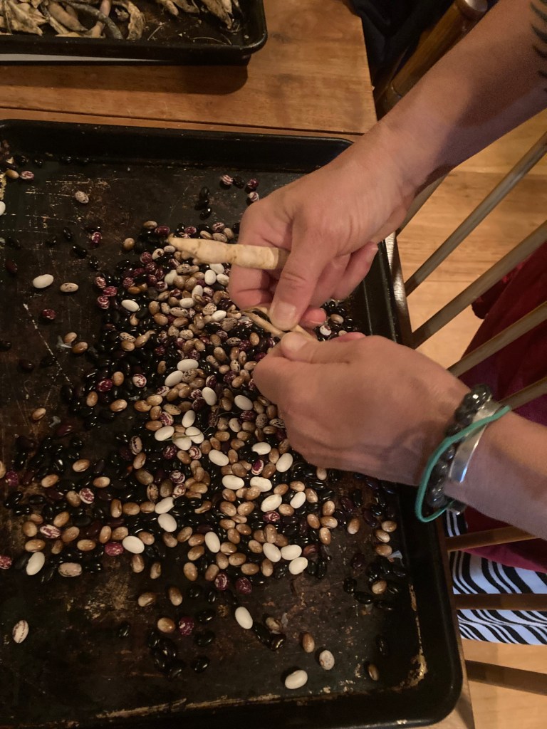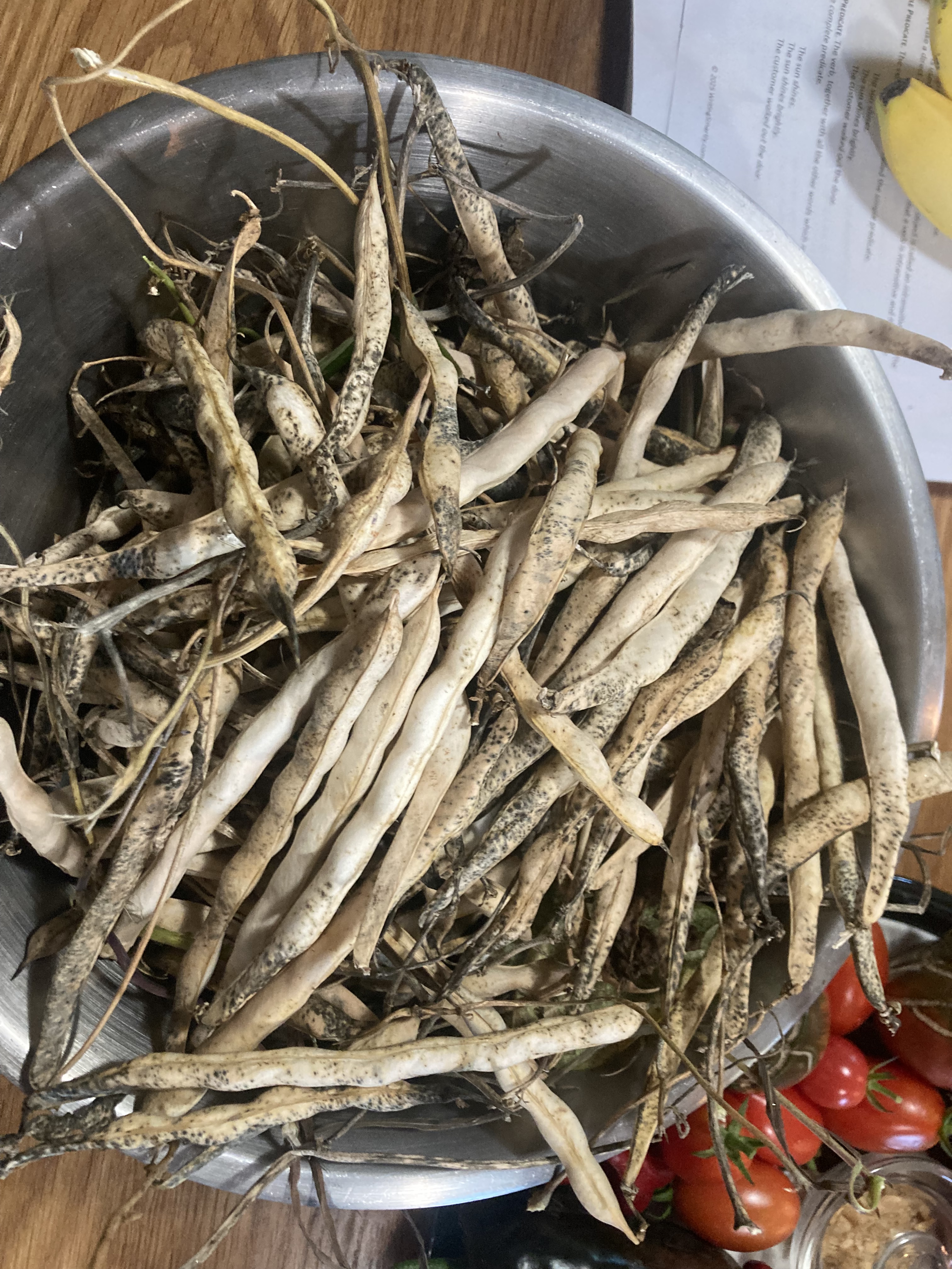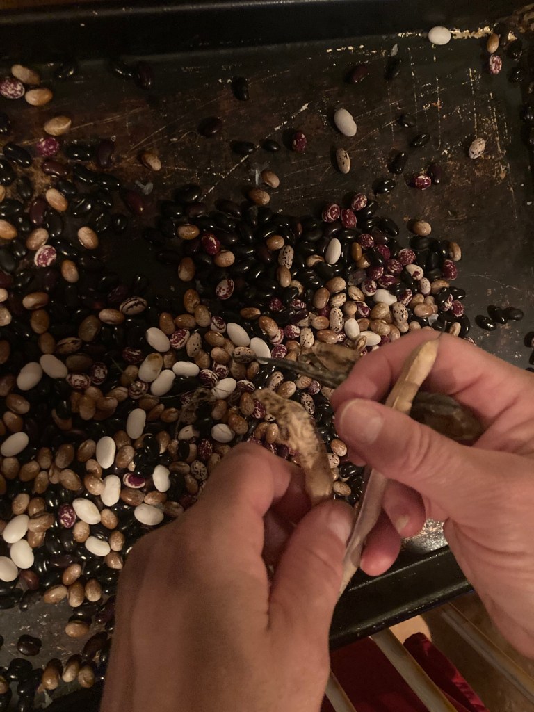 It is October and we glean the garden. Beans harvested, are shelled, put up for winter.