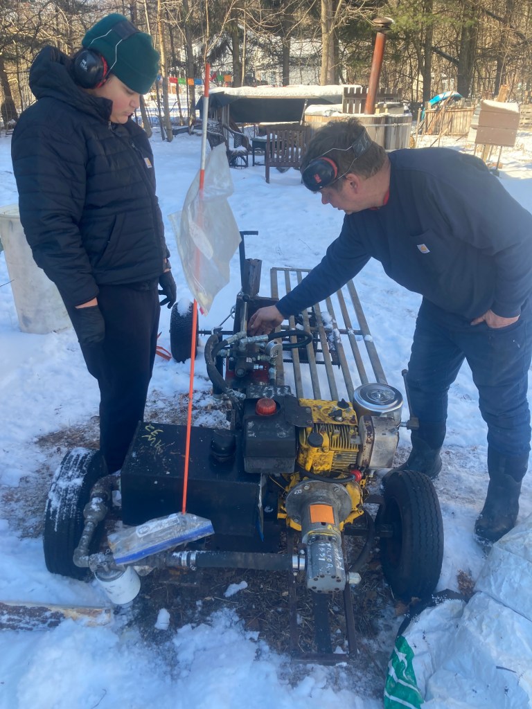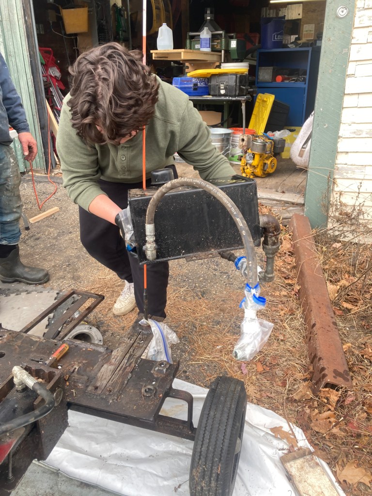 The Professor invited my son to disassemble the log splitter; a “shade tree science class” on small engines and fluid mechanics. The math of fluid dynamics gets very complex quickly, so we focused on the basic principles and how hydraulics work.