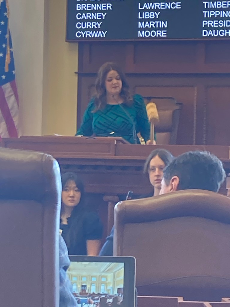 8am we drove north. We made the obligatory stop at Starbucks, which speaks a foreign language: “Venti iced chai with brown sugar syrup and brown sugar cold foam” is lost on me, so I ordered black coffee. We arrived at the capital Rotunda by 9, went through security, then found the Senate chambers. The Senators entered more or less around 10:15am. The decorum was pure British, the gavel absurdly large, the session went for hours, until we left about 2pm to get pizza. All-in-all a grand day.
