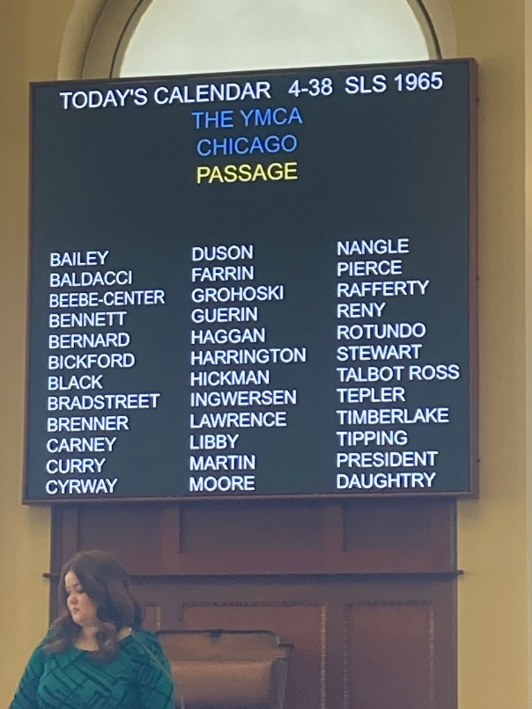 My daughter was an Honorary Page, recently, on the floor of the State of Maine Senate. At times boring, other times riveting, the Honorable Senators gave speeches extolling these or those constituents, but also argued over Digital Privacy laws, ICE and immigration, SNAP benefits and equal rights to food for all Mainers. The YMCA Chicago was honored. The YMCA was founded in Boston, so it was hard to understand why Chicago was celebrated, but the Senators’ praise was unceasing.