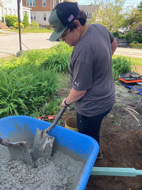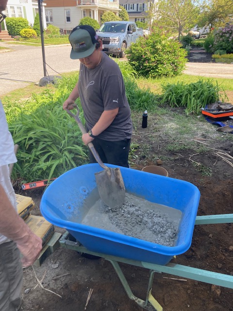 As a counterbalance to these abstractions, we poured concrete. The front entry of a friend’s home was demolished when his neighbor drove her car backwards, at a very high speed, into the front of his home. Remarkably, the driver avoided the house but smashed the stairs. Insurance paid little – no surprise there – so our marching orders are to be frugal. We are making it work, and my son is part of the crew. Child labor laws do not pertain in our homeschooling.