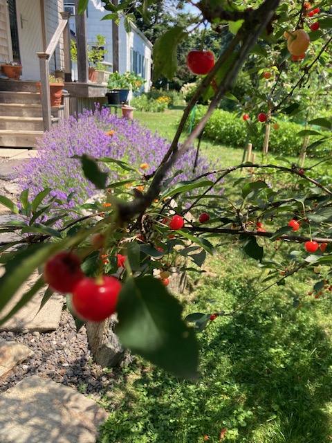 Here at an art farm, our gardens are lush and due to the heat, fruits ripen almost two weeks ahead of schedule.