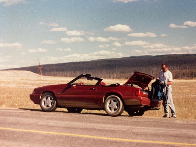 Posted: February 28, 2025 Filed under: Chronicles of a First Time Parent, Money & Banking, What is an Art Farm | Tags: bioregionalism, digital-marketing, internet-marketing, marketing 2 CommentsJune, 1993 Douglas and Laurie moved from Hyde Park (South Greenwood Avenue) to Rogers Park (1336 Chase Street). In August Douglas came west to visit me, and on the spur of the moment, we drove his rented Red V8 Mustang convertible 932 miles north to Montana, where Brian was working in a laundromat at Yellowstone Park. We spent one day there, then drove back to Arizona: 1,800 miles in 72 hours. The long stretch of Utah and Wyoming desert was extraordinarily dull but we were young, full of moxie, Douglas had the corporate Amex, there was no turning back.