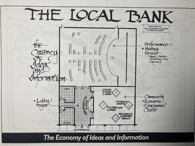 In addition to planning the world’s digital library, I organized a bio-regional news service and drew blue prints for community-based retail outlets. To my mind, the information future could not only be virtual, but need be tethered to life on the planet. I adapted Aristotle’s definition of man as a “political animal” using the tag line “Regardless of the internet’s reach, we will always communicate face-to-face with our neighbors.” I travelled to Vienna, Austria to attend an eco-cities conference, on how to rebuild our human habitat in balance with living systems.