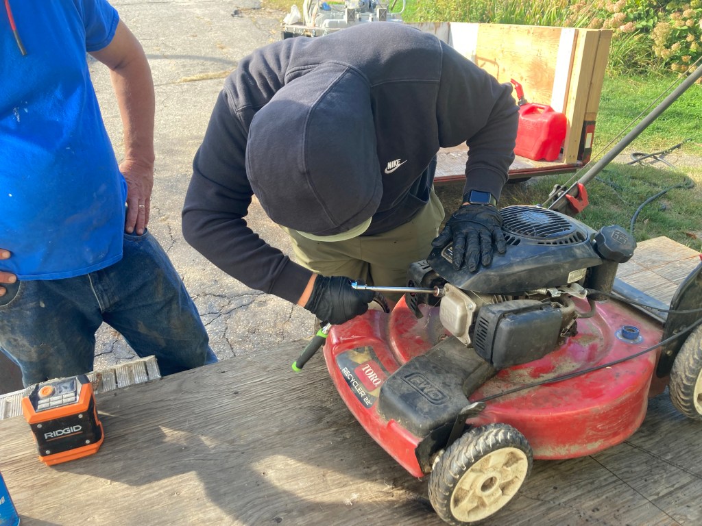 “With Professor Nate, I worked on a Toro Recycler lawn mower with a 22” deck. The first thing we did was try to start it. It would not start. We realized that it did not have an air filter.