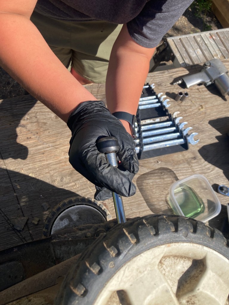 “Next we will get a new air filter, new drive belts and a blade. We need to clean the mower. We are also studying Volts, Amps, Ohms and Watts as part of our science class.”