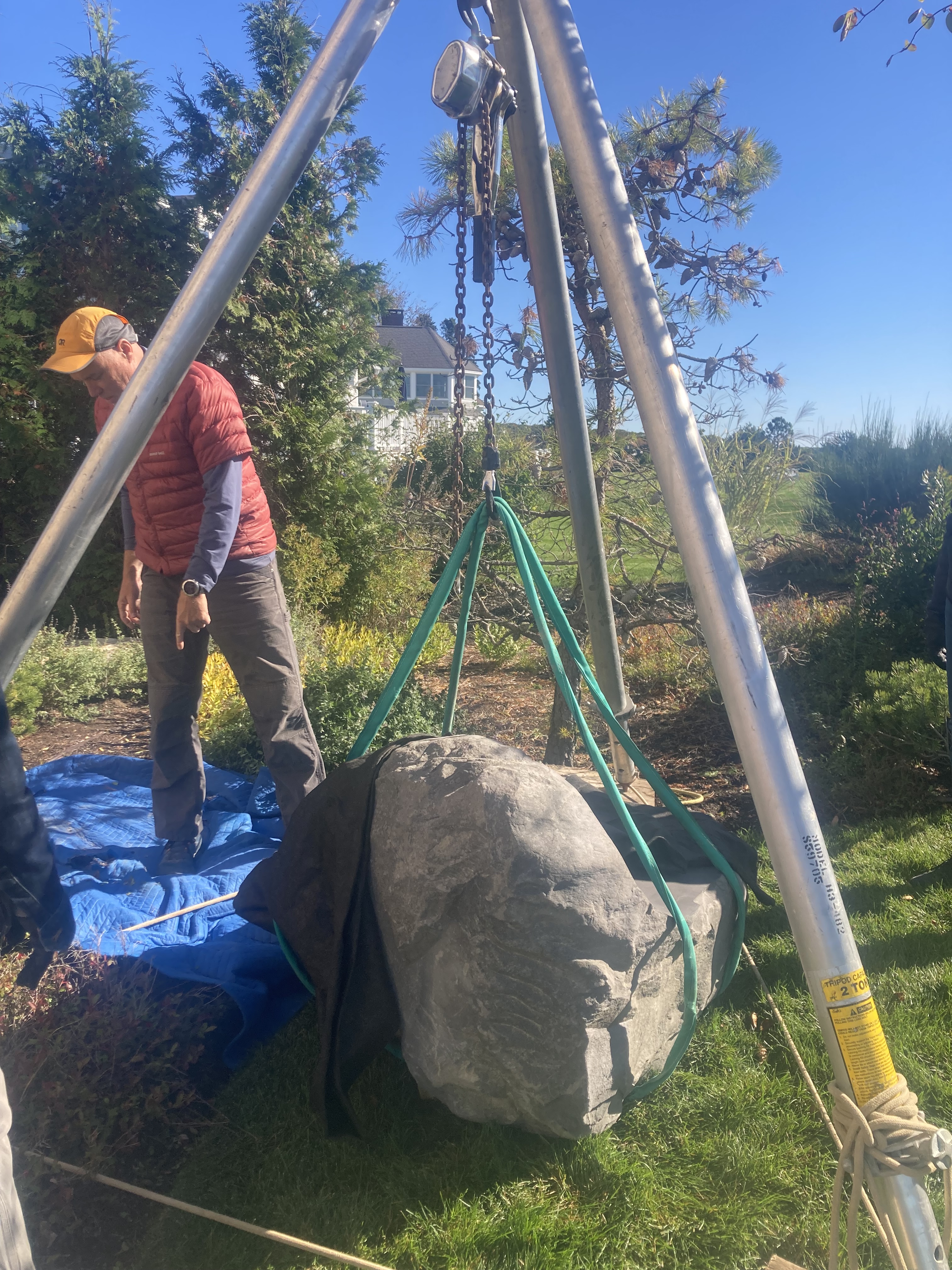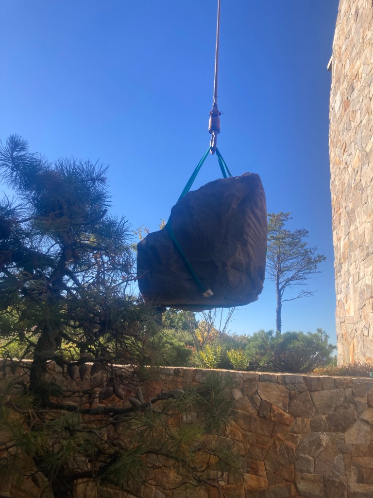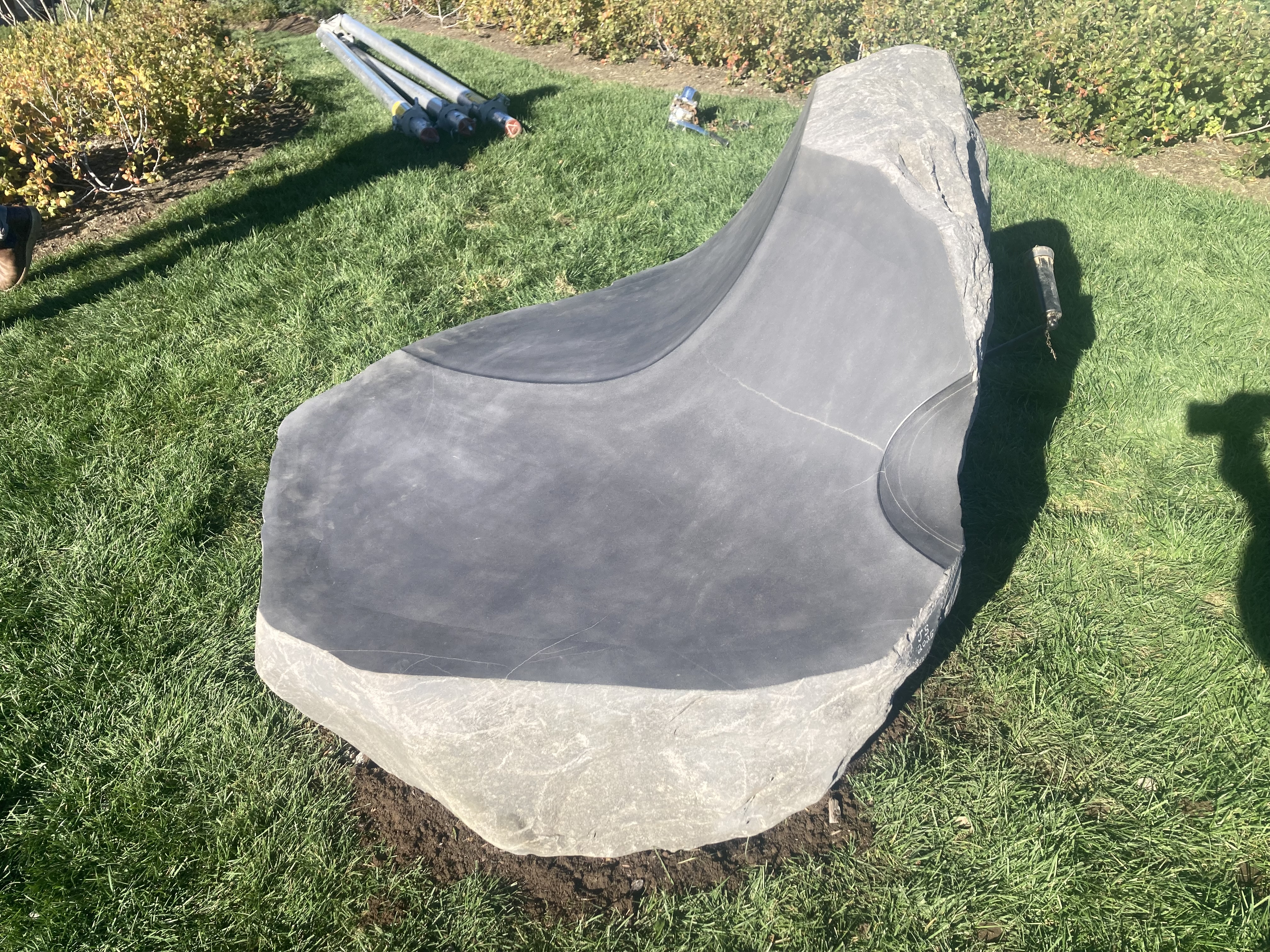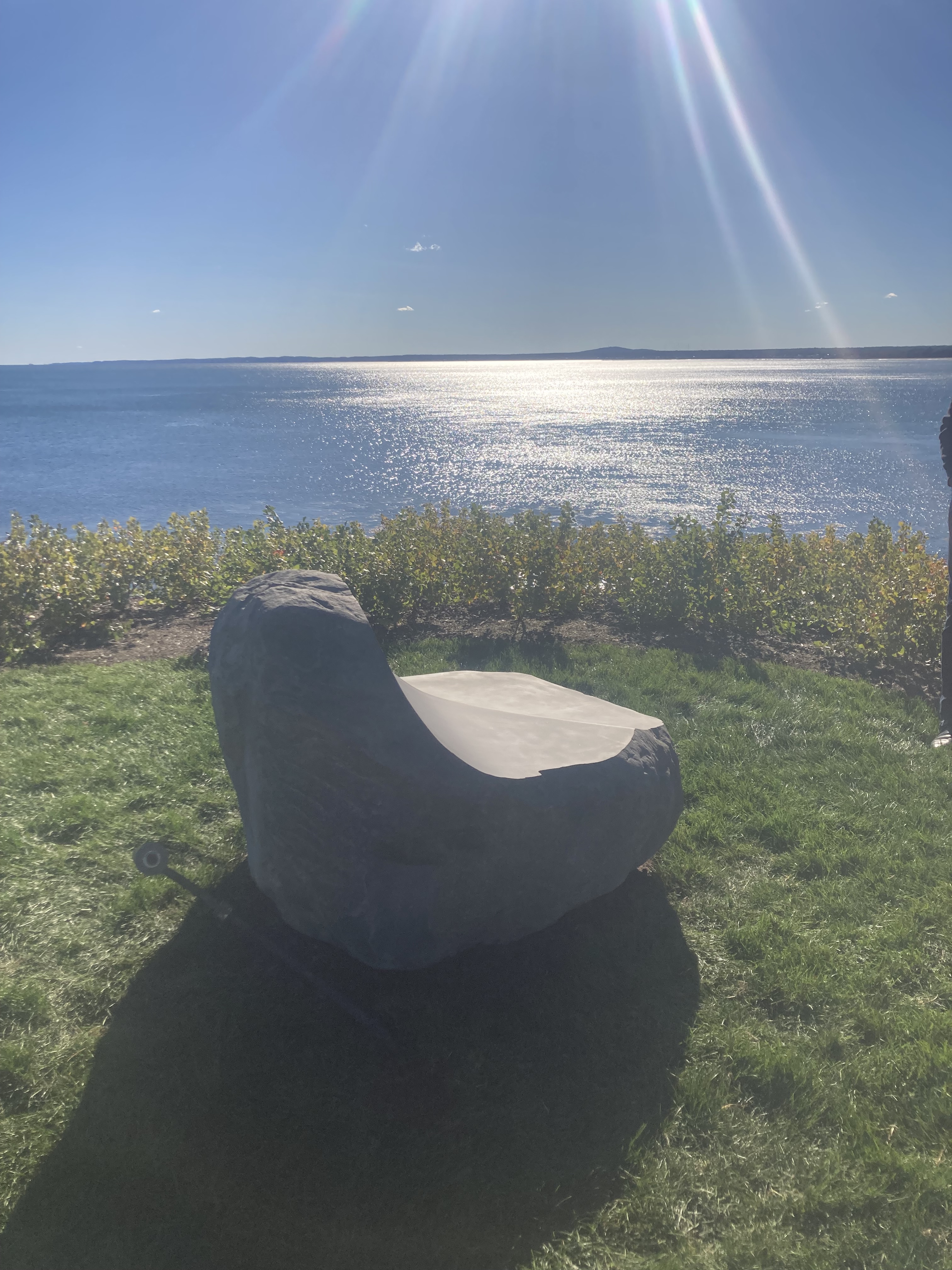 In other news, this week I helped install a sculpture down in Kennebunk. Jesse Salisbury is the esteemed maker of this seat carved from Basalt, a hard black volcanic rock. Heavy lifting 1.5 tons up that hill, but well worth the effort in the end. Ars long, vita brevis.