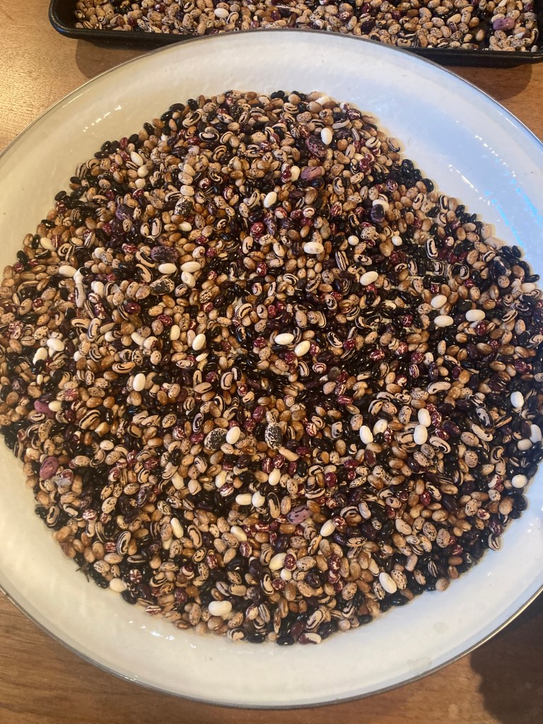 It is October and we glean the garden. Beans harvested, are shelled, put up for winter.