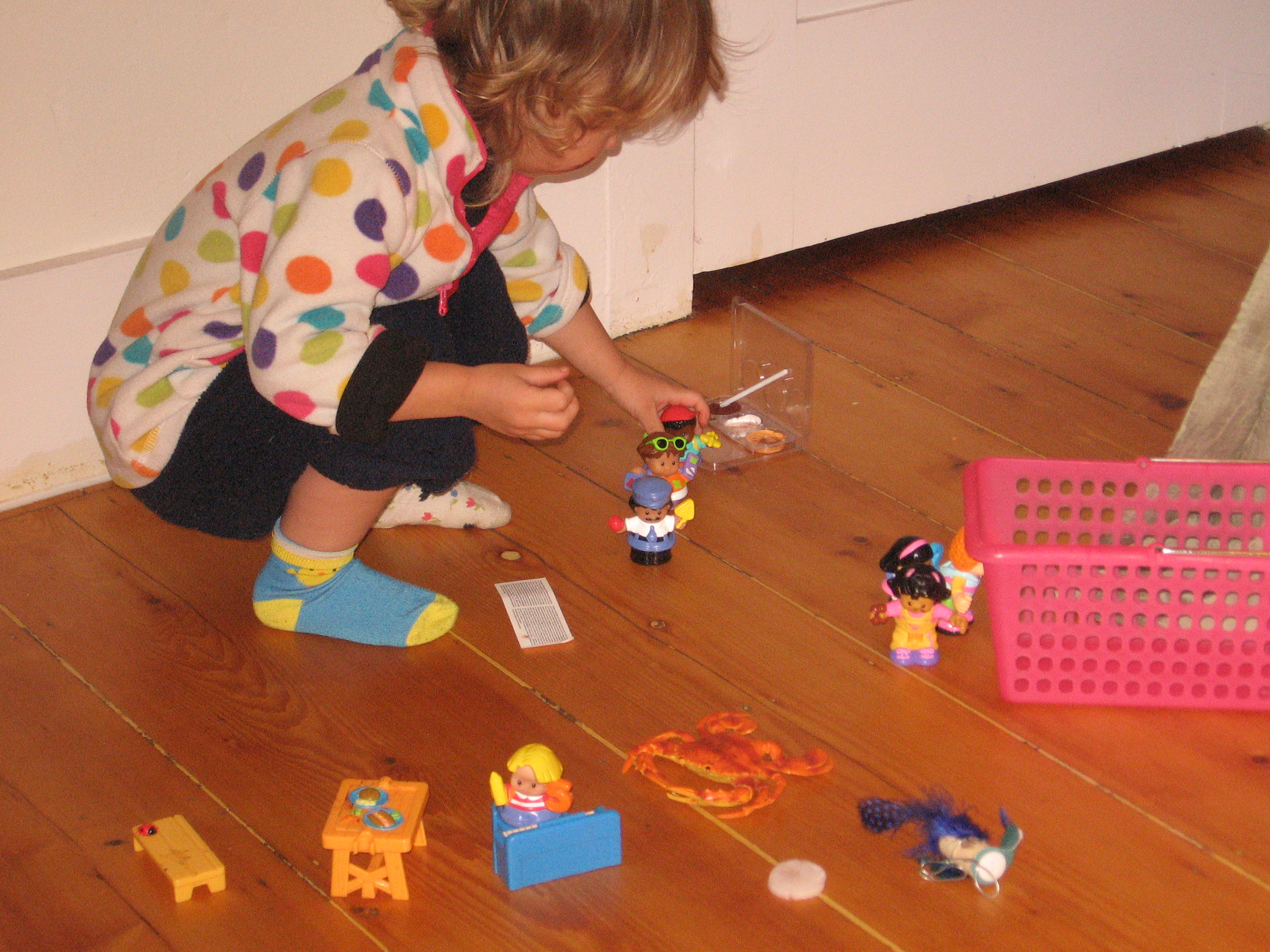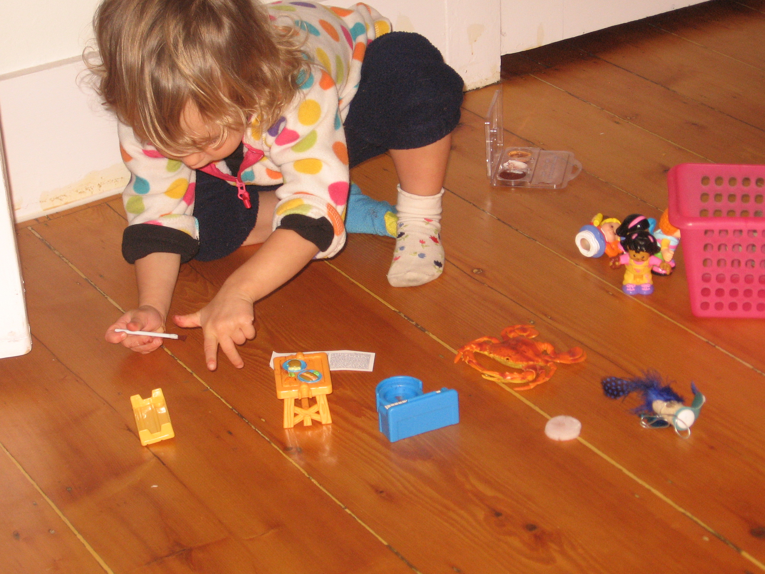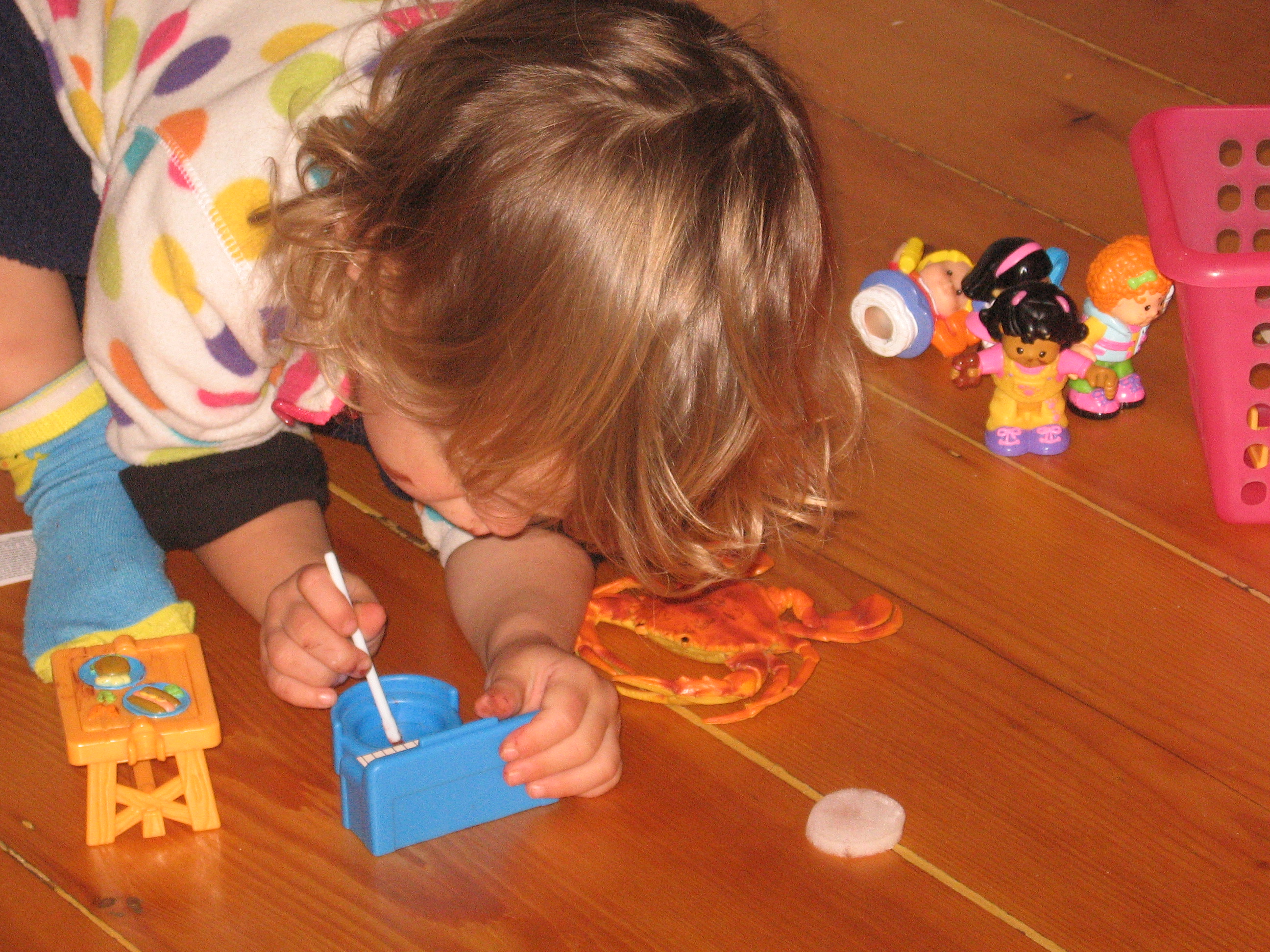 Posted: October 31, 2011 Filed under: Child Centered Activities 2 CommentsMy daughter decides that her cast of Little People need their noses (and their furniture) painted for Halloween. Thanks Auntie Babs for the face paints!